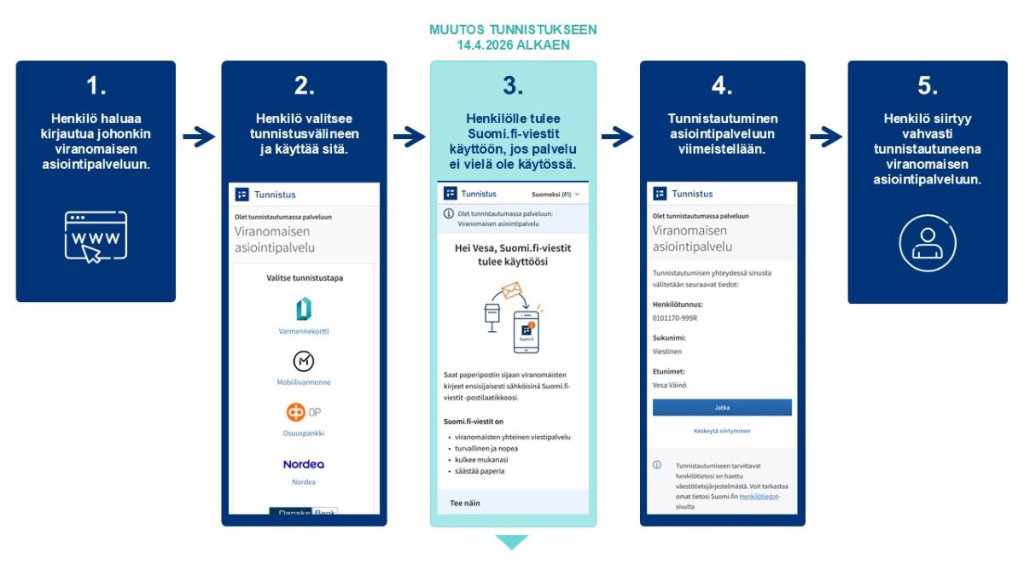 - Ota Suomi.fi-viestit ensin käyttöön, kun tunnistaudut viranomaisen verkkopalveluun